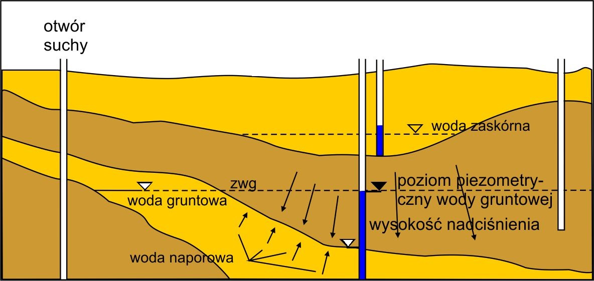 Rys. 8. Różne poziomy piezometryczne wody gruntowej