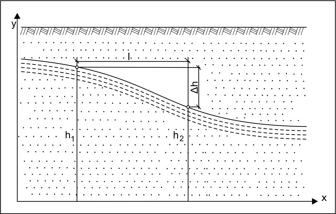 gdzie: v – prędkość filtracji [m/s], k - współczynnik filtracji [m/s], i - ∆h/l – spadek hydrauliczny (gradient) – strata naporu wody ∆h na odległości l